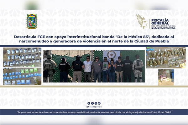 Como parte de la estrategia para combatir actividades ilícitas relacionadas con la venta y distribución de droga, la Fiscalía General del Estado (FGE) llevó a cabo un operativo coordinado con la Secretaría de la Defensa Nacional (DEFENSA), la Secretaría de Marina (SEMAR), la Guardia Nacional (GN) y la Secretaría de Seguridad Pública Estatal (SSPE), mediante el cual se logró desarticular una célula delictiva identificada como generadora de violencia en el norte de la ciudad de Puebla.