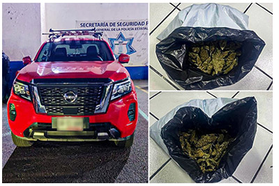 Además, los uniformados aseguraron una camioneta Nissan de color rojo, que transportaba dos bolsas negras con, aproximadamente, tres kilogramos de marihuana.