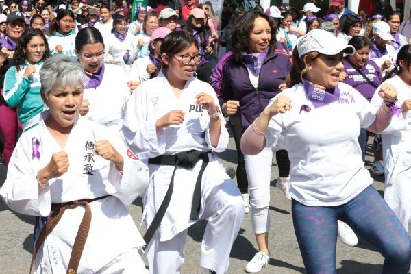 Como parte de una iniciativa que fortalece la seguridad, la confianza y la organización comunitaria de las participantes, cientos de poblanas participaron en una clase masiva de karate do, enfocada en la defensa personal, organizada por el Gobierno del Estado en el marco del Día Internacional de la Mujer.