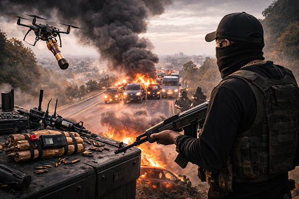 El uso de drones marca un punto clave en esta evolución; no es que los grupos criminales hayan inventado algo nuevo, sino que adaptaron tecnología comercial para fines violentos, vigilancia aérea, lanzamiento de explosivos improvisados o monitoreo de movimientos de autoridades y rivales. Esto reduce riesgos para los agresores y amplía su capacidad de ataque.