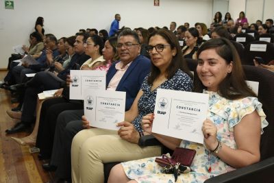 La rectora Lilia Cedillo Ramírez presidió la ceremonia de entrega de constancias a 83 trabajadores de la Secretaría de Infraestructura del gobierno estatal, que participaron en cursos de capacitación que impartió la BUAP.