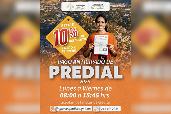 Atlixco ofrece 10% de descuento en el pago del predial durante enero