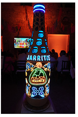 Uno de los elementos más emblemáticos de la celebración son las botellas monumentales de Jarritos, de 1.5 metros de altura, intervenidas por artesanos de distintas regiones del país. Cada botella fue decorada con técnicas tradicionales como la talavera poblana, el arte huichol, los alebrijes, tenango y la cartonería, en colaboración con colectivos de artesanos.