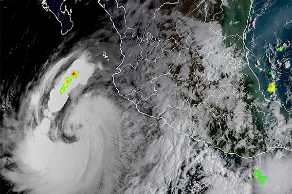 El meteoro presenta vientos máximos sostenidos de 140 kilómetros por hora (km/h) y rachas de 170 km/h, detalla el reporte climático de la dependencia de la Comisión Nacional del Agua.