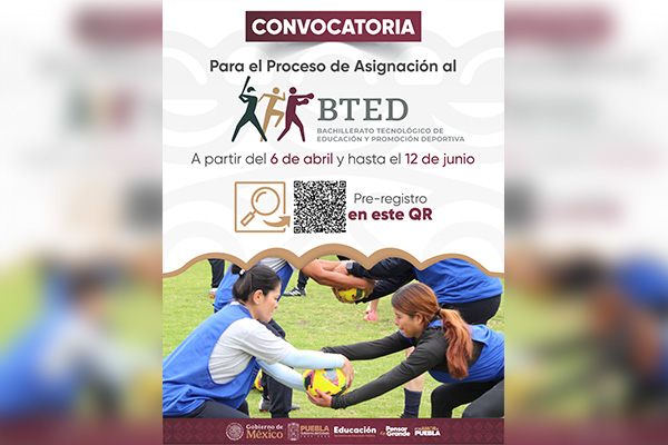 Con el objetivo de formar técnicos de promoción deportiva, la Secretaría de Educación Pública del Estado de Puebla, difunde la convocatoria para el proceso de admisión del “Bachillerato Tecnológico de Educación y Promoción Deportiva”, dirigida a egresados de nivel secundarias para el ciclo escolar 2026-2027.
